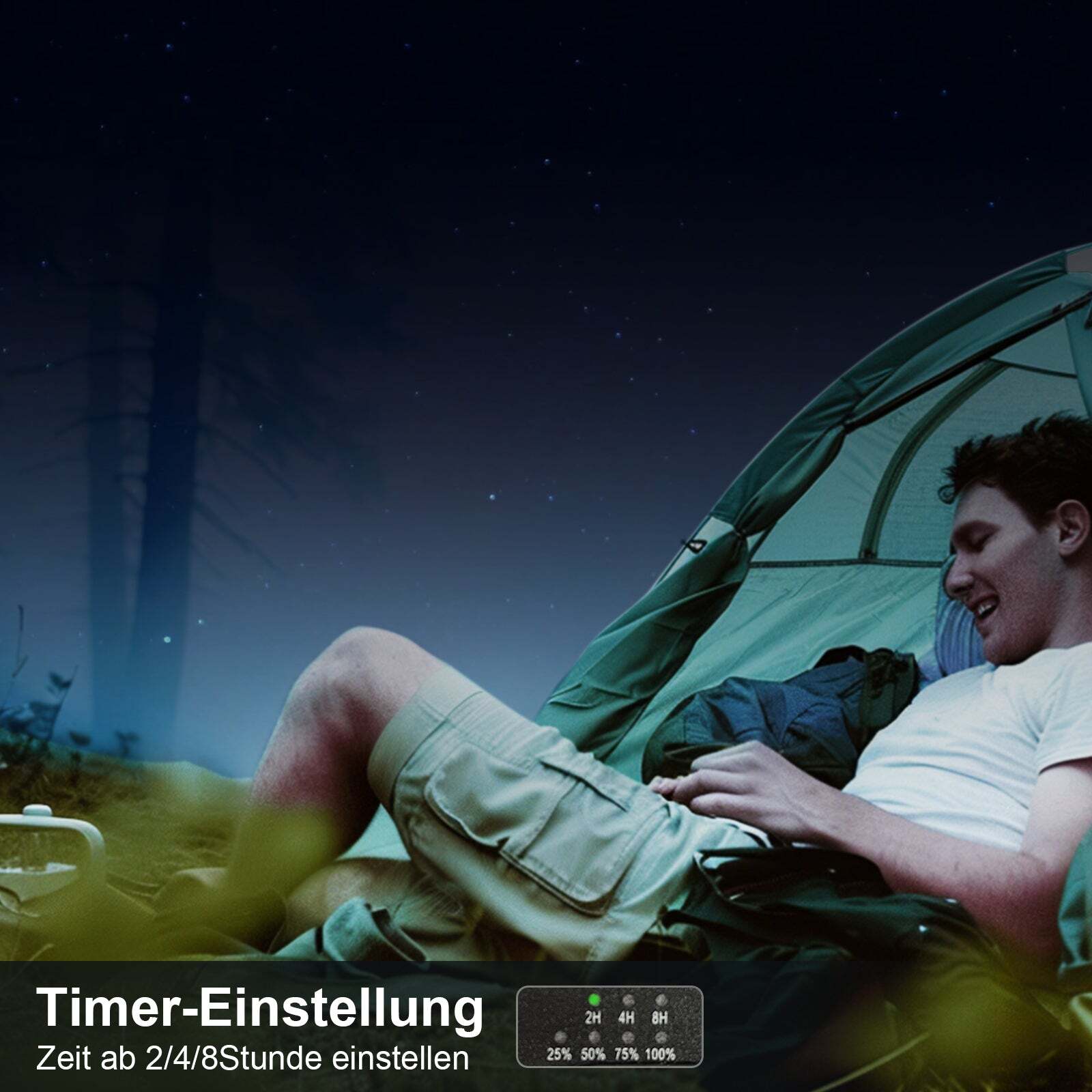 This fan provides a powerful breeze and ensures that you never have to endure a hot, uncomfortable night again. With its 4 speed levels, you can adjust the airflow exactly to your needs, keeping your tent or campsite refreshingly cool even on the hottest days.